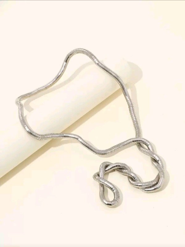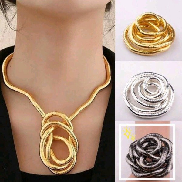 Collar tipo gargantilla con diseño serpiente flexible, en color negro con acabado metálico brillante.