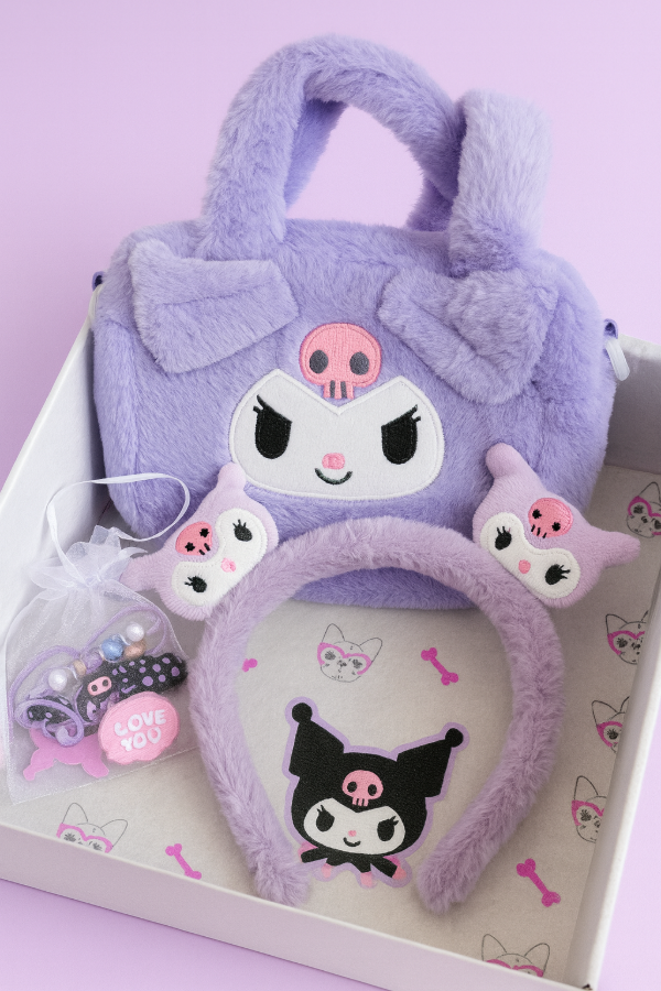 La caja sorpresa que tu peque va a amar ✨Suavecita, aesthetic y llena de detalles en lila y negro que hacen que esta edición sea irresistible. Ideal para fans de Kuromi que aman el estilo cute con personalidad. 💜😈✨