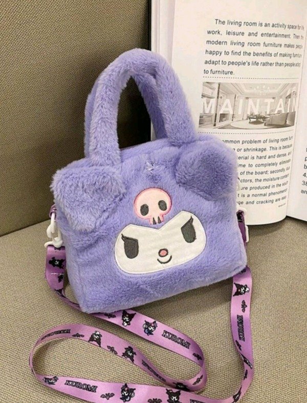 👜 Cartera/bolso de peluche Kuromi con orejitas y bordados premium.