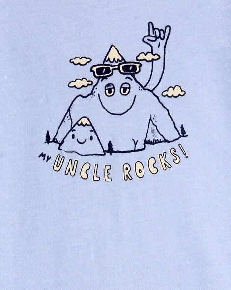 Body Carter’s de algodón suave, ideal para el día a día del bebé. Diseño divertido con ilustración de montañitas cool y la frase “My Uncle Rocks!”, perfecto para regalar o destacar un outfit casual.