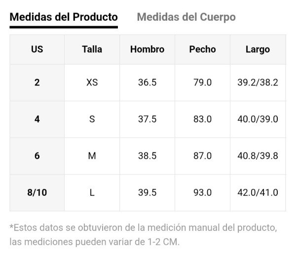 📏 Tabla de talles en la última imagen