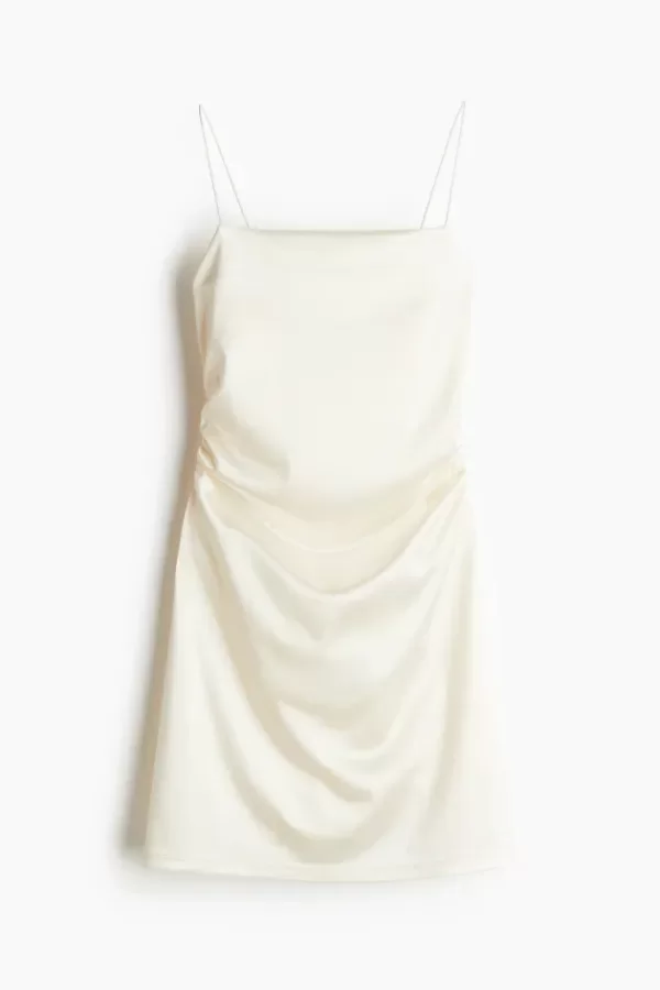 Vestido corto importado H&M, confeccionado en tejido tipo satén suave y liviano, ideal para un look elegante y moderno.