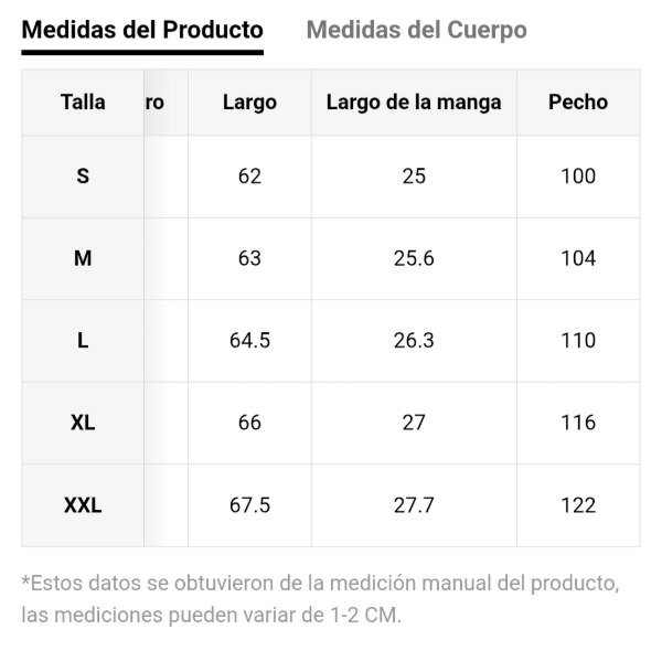 📏 Tabla de talles en la última imagen.