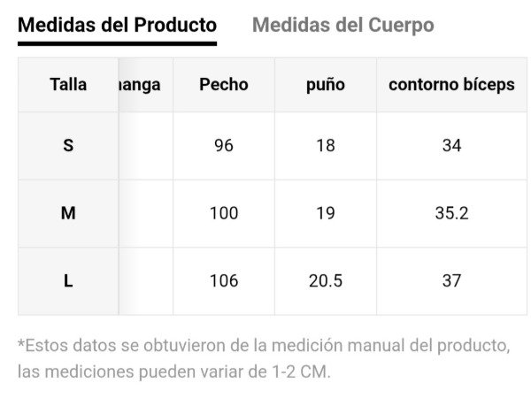📏 Tabla de talles en la última imagen.