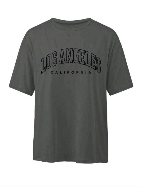 Posee corte holgado tipo oversize, cuello redondo y estampa frontal con la inscripción “Los Angeles California”, ideal para un look moderno, relajado y con actitud.