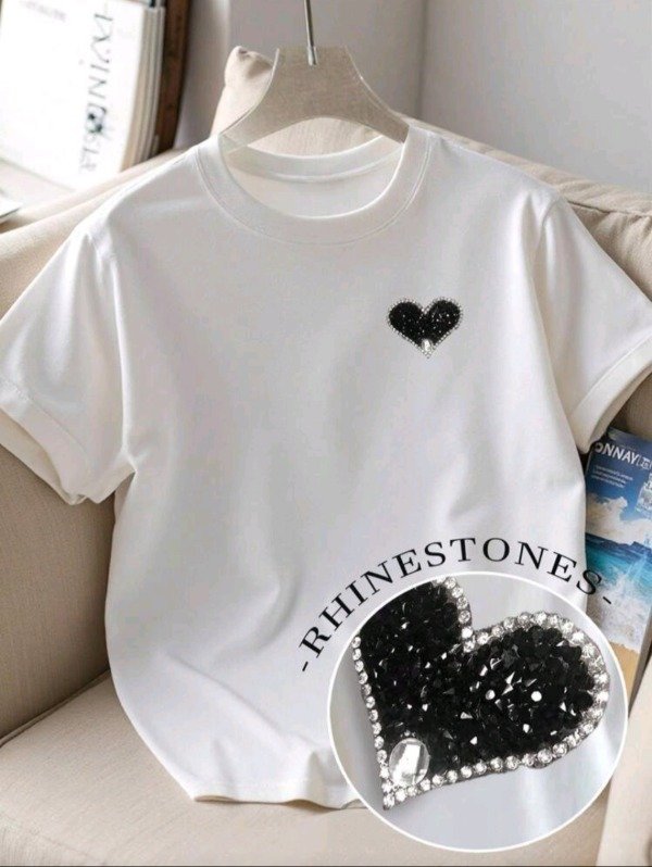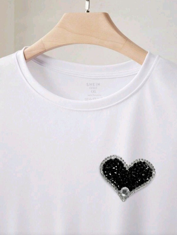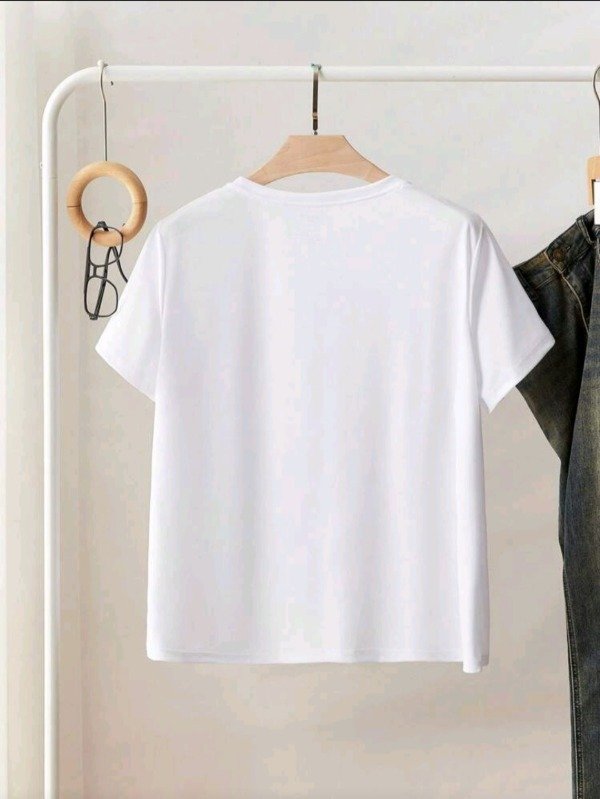 Remera SHEIN de manga corta con un toque glam, confeccionada en tela suave tipo algodón con ligera elasticidad.