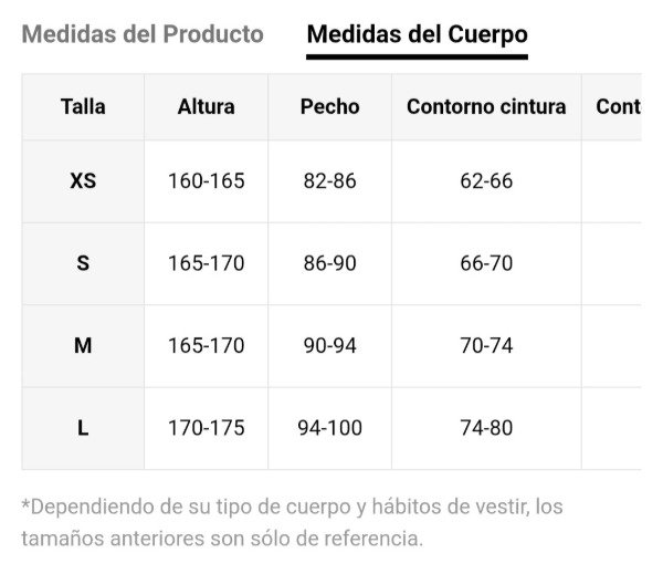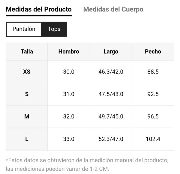 Tabla de talle en la última imagen