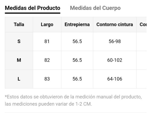 Tabla de talles en la última imagen