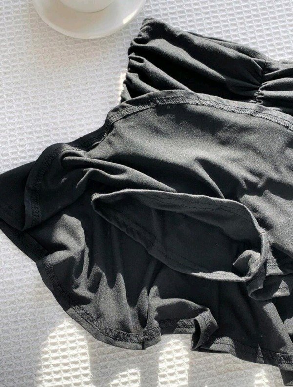 Presenta efecto fruncido delantero, dobladillo con volado y short interno para mayor comodidad y seguridad al usarla.