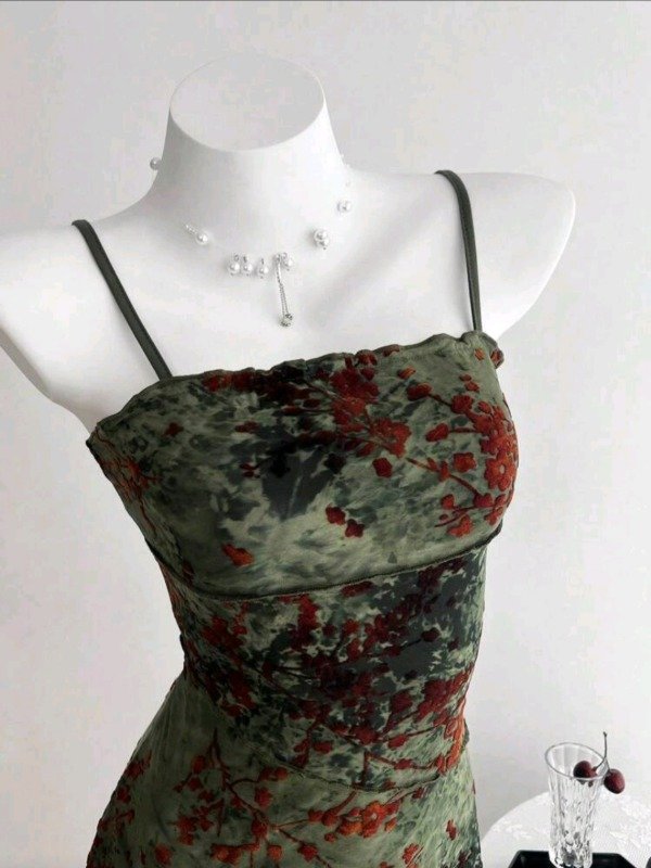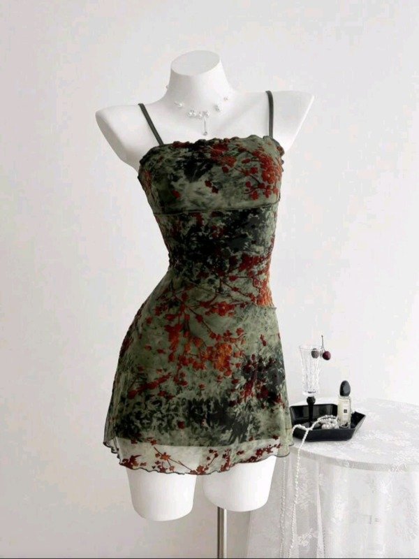 Su corte ajustado con breteles finos y falda con leve transparencia aporta un look femenino, vintage y delicado.