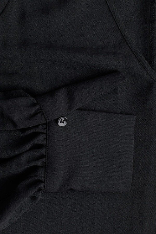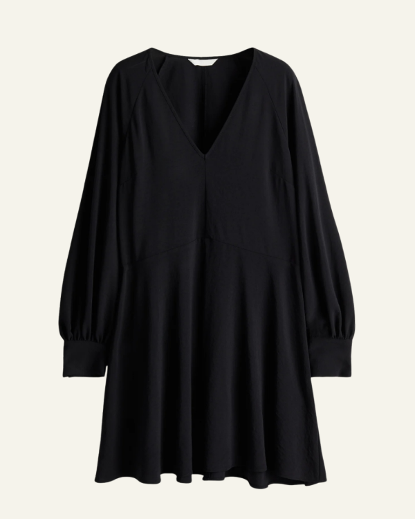 Vestido H&M de mujer, confeccionado en tela liviana y fluida, ideal para usar tanto de día como de noche. Su escote en V estiliza la silueta y el corte debajo del busto aporta caída y comodidad.