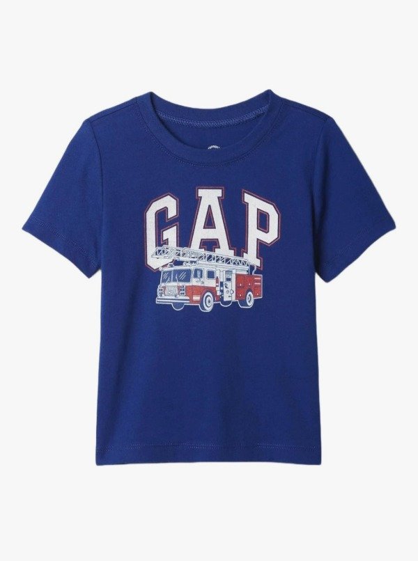 Remera infantil original de GAP, ideal para sumar estilo y comodidad al look diario de los más chicos. Diseño de manga corta y cuello redondo, con estampa GAP y camión de bomberos al frente, que la hace canchera y divertida.
