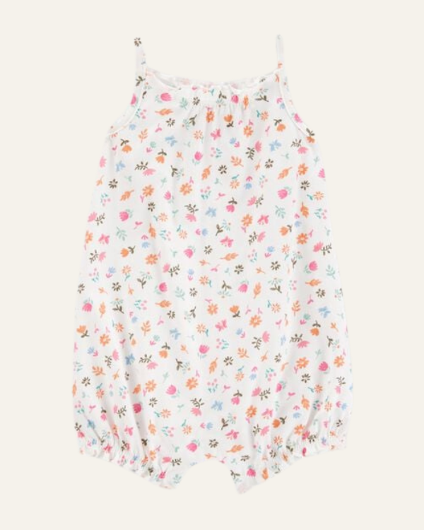 Este romper Carter’s para bebé niña es la prenda ideal para los días cálidos: fresco, cómodo y lleno de dulzura. Confeccionado en algodón suave y respirable, presenta un estampado floral multicolor que aporta un look alegre y delicado. Incluye cierres a presión al frente y en las piernas que facilitan el cambio de pañales, y su diseño de una sola pieza lo convierte en un básico práctico para el guardarropa de tu pequeña.