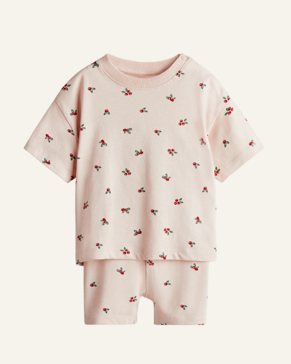 Set original H&M para bebé, compuesto por remera manga corta y biker, confeccionado en algodón suave y liviano, ideal para los días de calor y para el uso diario 🌸