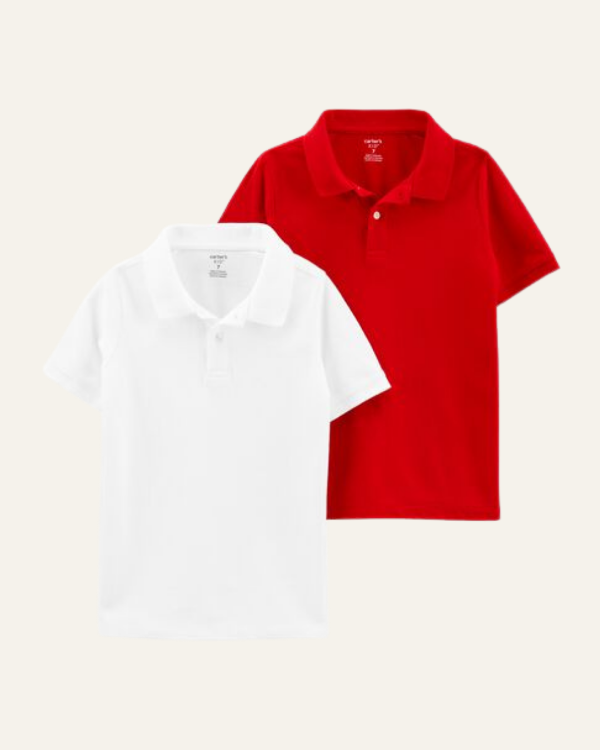 Pack de dos chombas Carter’s originales, confeccionadas en tela piqué suave con leve elasticidad para mayor comodidad y libertad de movimiento.
