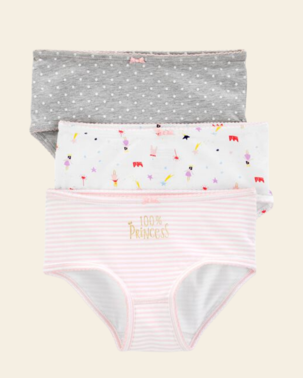 Pack de 3 bombachitas Carter’s ultra suaves, cómodas y perfectas para el uso diario.