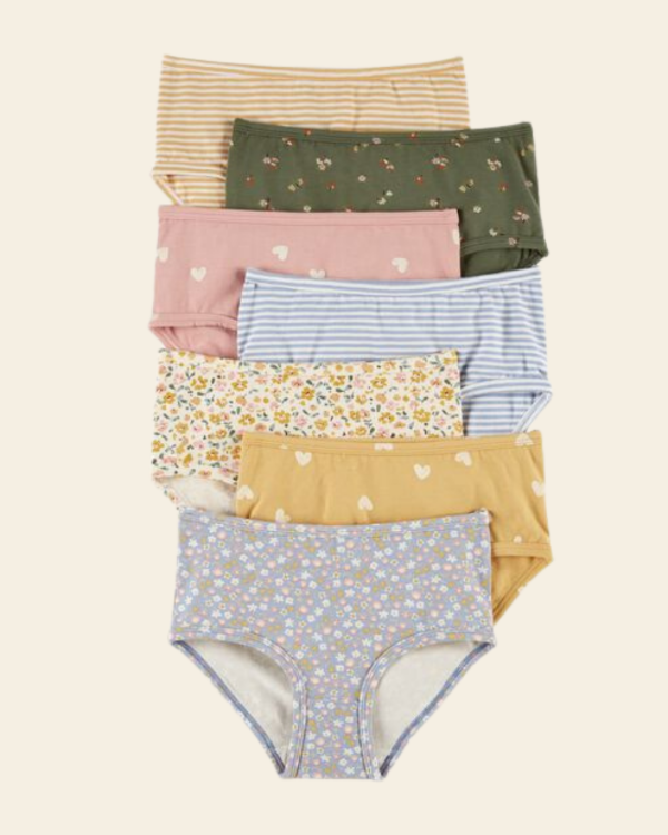 Pack de siete bombachas Carter’s originales, confeccionadas en suave algodón con un toque de elastano para ofrecer comodidad, ajuste perfecto y libertad de movimiento.
