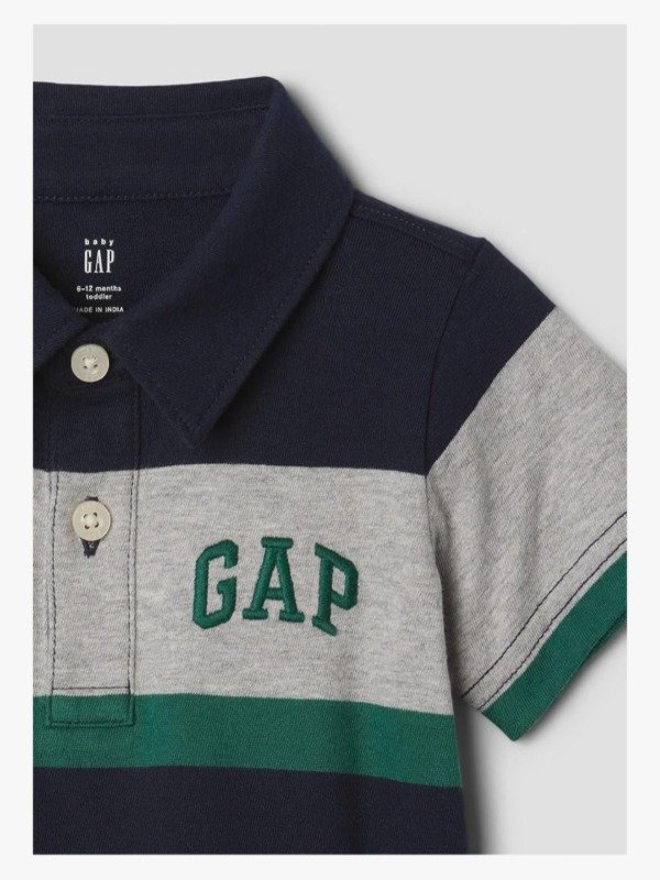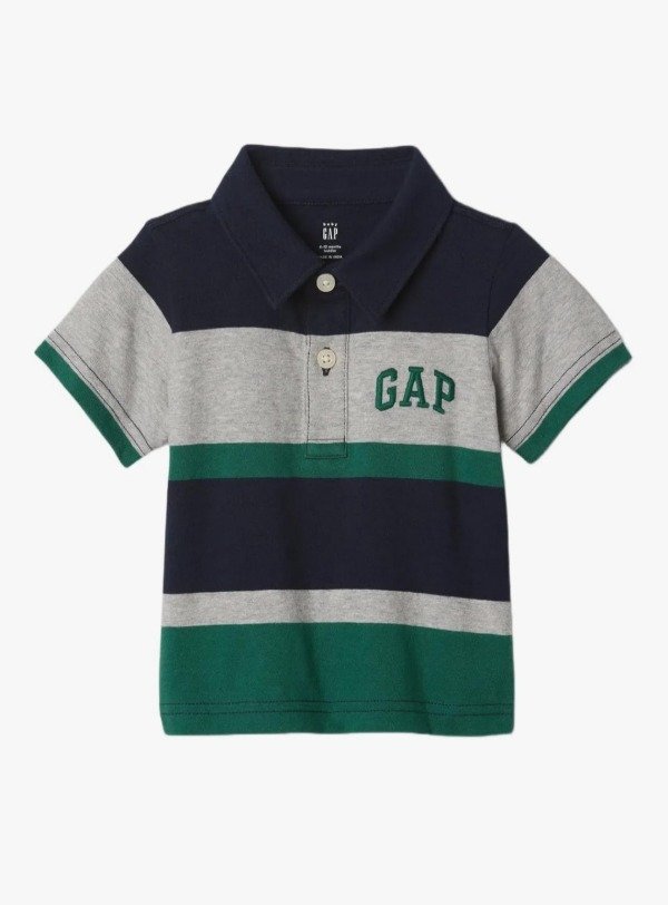 Chomba original de GAP, ideal para un look clásico y prolijo en los más chicos. Diseño rayado en tonos azul, gris y verde, con logo GAP bordado en el pecho que le aporta el sello distintivo de la marca.