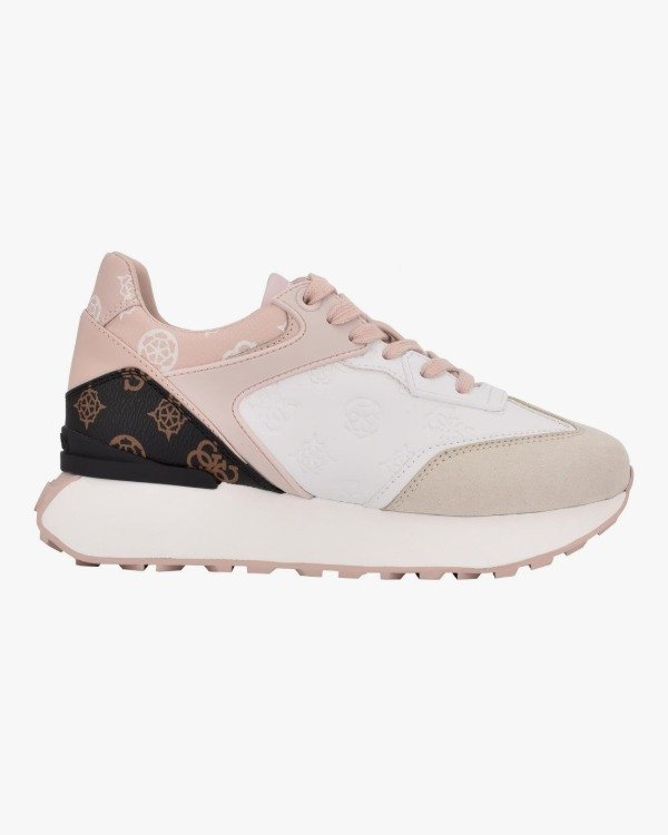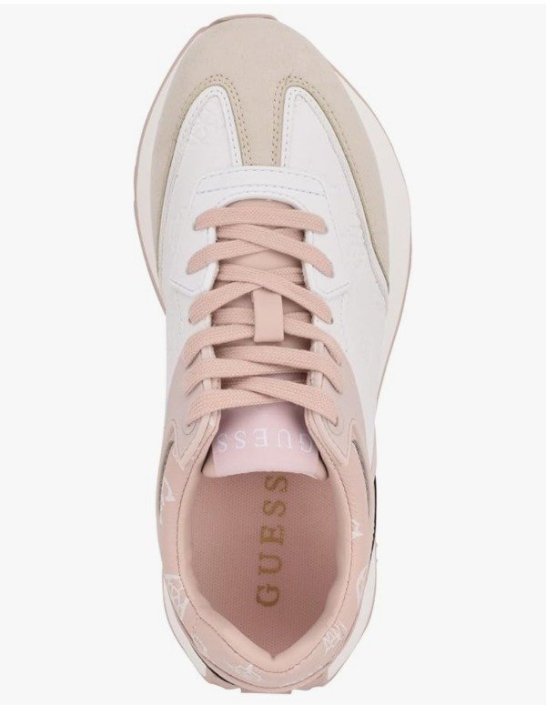 Las Guess Luchia combinan elegancia y comodidad con el estilo inconfundible de la marca. Confeccionadas en materiales sintéticos, gamuza y cuero ecológico, presentan una paleta en tonos nude, beige, blanco y negro con detalles del logo Guess en relieve, logrando un diseño moderno y sofisticado.