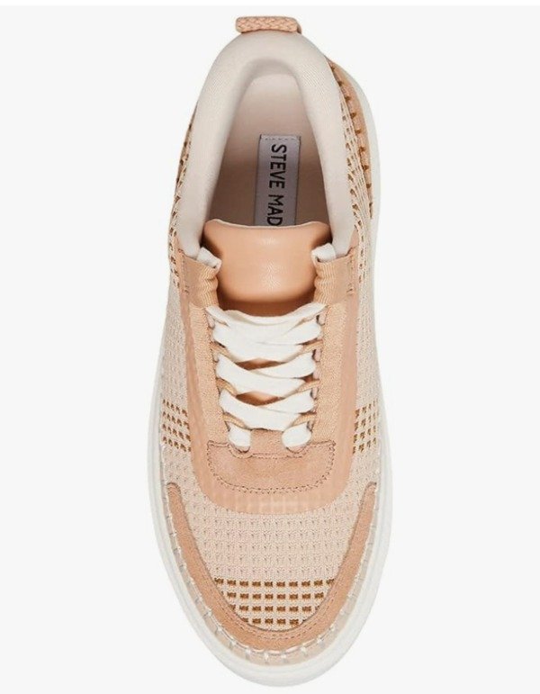 Las Steve Madden Catcher elevan tu estilo casual con su diseño moderno y textura tejida. Confeccionadas en material textil y cuero sintético, presentan una base alta con plataforma blanca de 4 cm aprox., aportando altura sin perder comodidad. Su tono nude rosado y las costuras decorativas le dan un toque femenino y sofisticado.