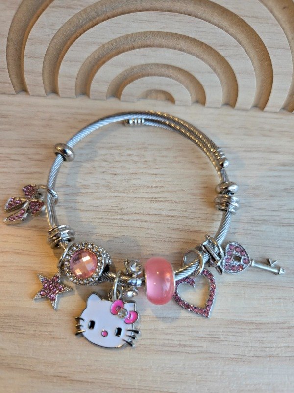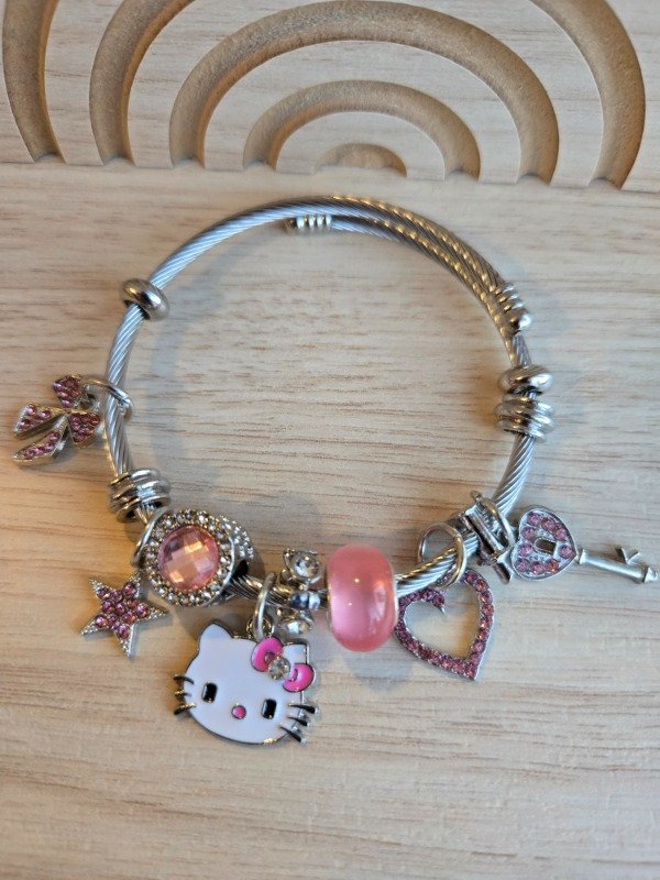 🔍 Palabras clave SEO: pulsera Hello Kitty, pulsera kawaii, estilo Pandora, brazalete rosa, accesorios Tiki Importados, bijouterie importada, regalo tierno, Hello Kitty Argentina.