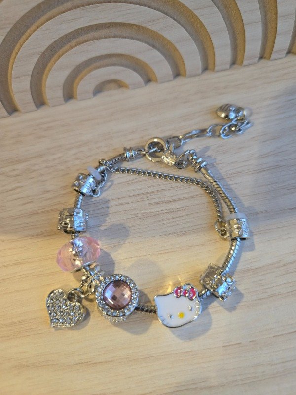 🔍 Palabras clave SEO: pulsera Hello Kitty, pulsera kawaii, bijouterie importada, pulsera rosa, accesorios Tiki Importados, pulsera estilo Pandora, regalo tierno, Sanrio.