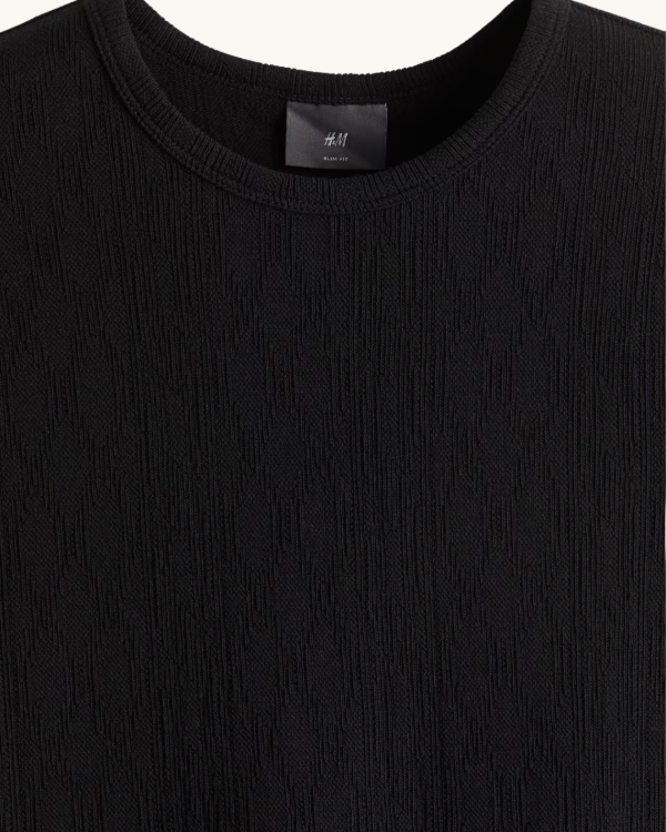 Remera original H&M para hombre, confeccionada en jersey pesado elástico con textura. Una prenda moderna, minimalista y fácil de combinar.