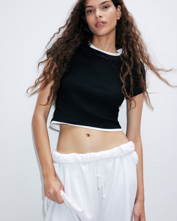 Pack de 2 remeras básicas H&M importadas, confeccionadas en algodón suave y elástico para un calce cómodo y favorecedor. Incluye una remera blanca y otra negra, con cuello redondo y manga corta, ideales para combinar con cualquier look.