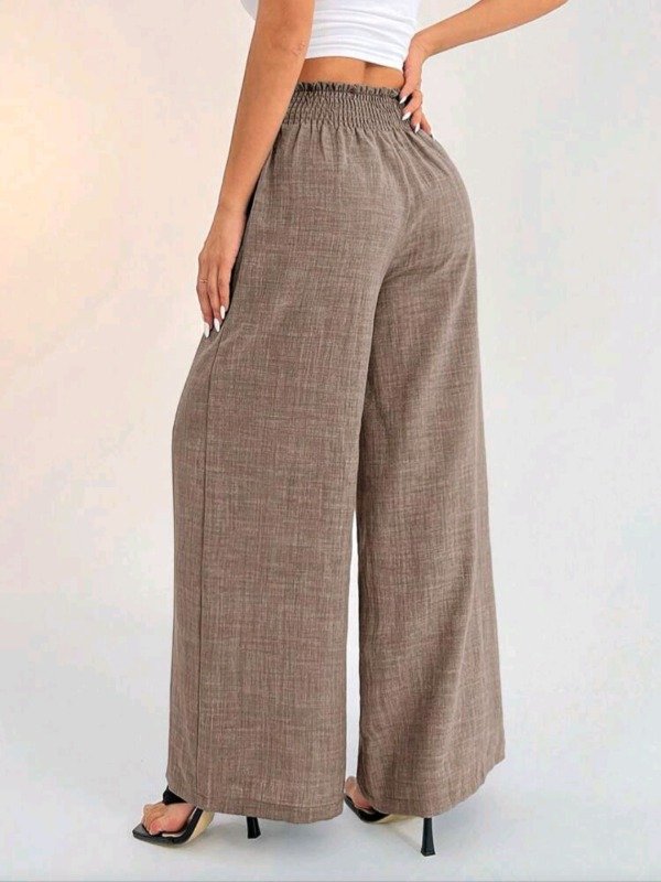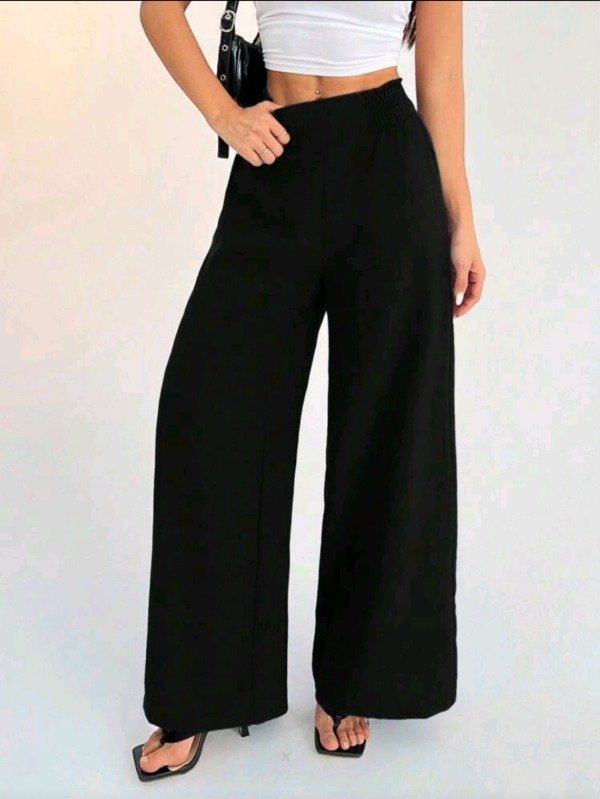 Diseñado con tiro alto, cintura elastizada y pierna ancha, combina comodidad y sofisticación en una prenda versátil ideal para toda ocasión.