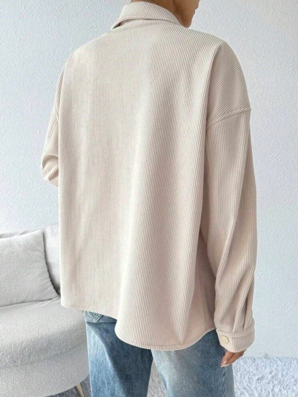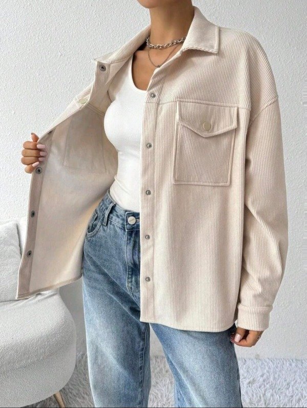 Camisa Shein estilo oversize confeccionada en pana beige claro.