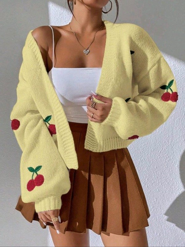 Cardigan de lana con bordado de cerezas