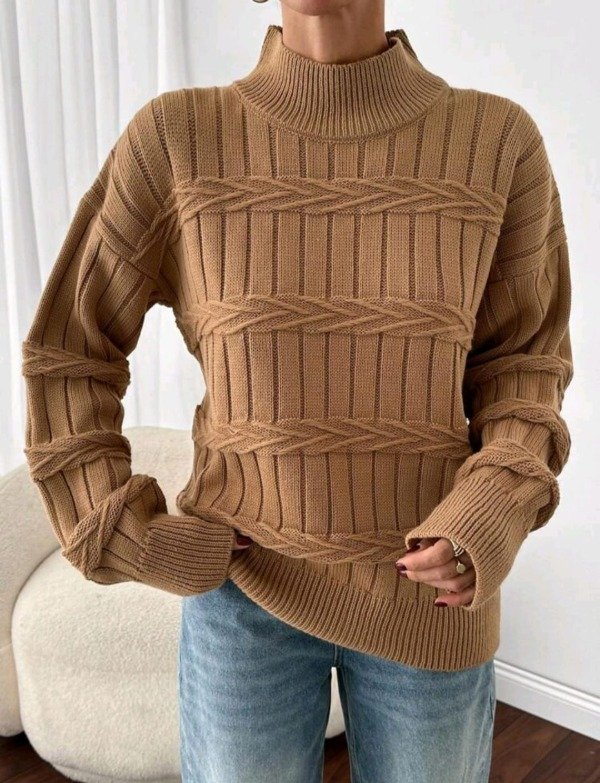 Sweater Shein de punto grueso con detalle trenzado y diseño elegante.
