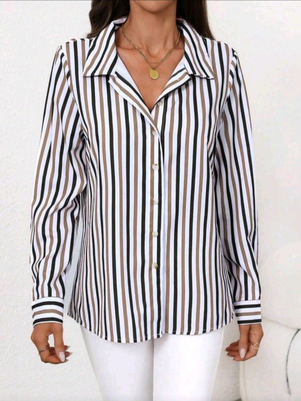 Blusa SHEIN Clasi, de manga larga con diseño a rayas verticales que estilizan la figura.