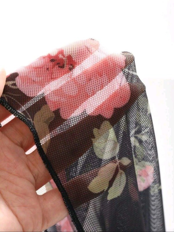 Vestido corto DAZY con diseño floral sobre fondo negro.