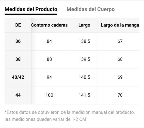 Corte: largo con abertura lateral y escote en “V”.
