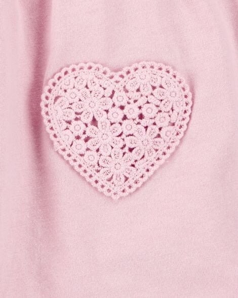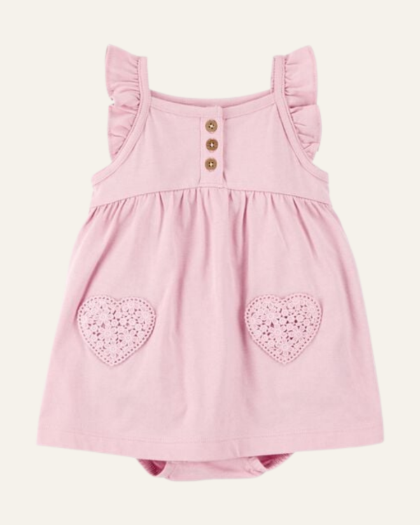 -Color rosa con detalle floral y bolsillos en forma de corazón ❤️
