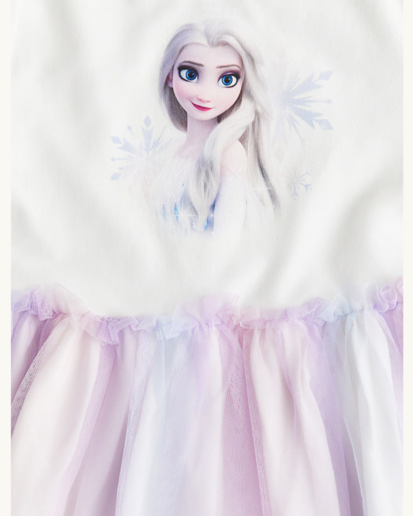 Producto: Vestido de jersey de algodón suave con estampado en la parte delantera. Mangas largas, fruncido, costura con volante sobre una falda de tul y falda interior de jersey.