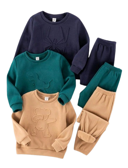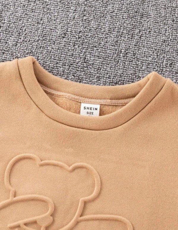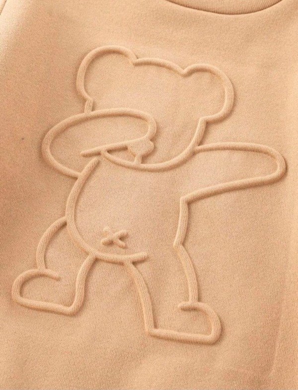 Conjunto pantalon y buzo frisados, estampa con relieve