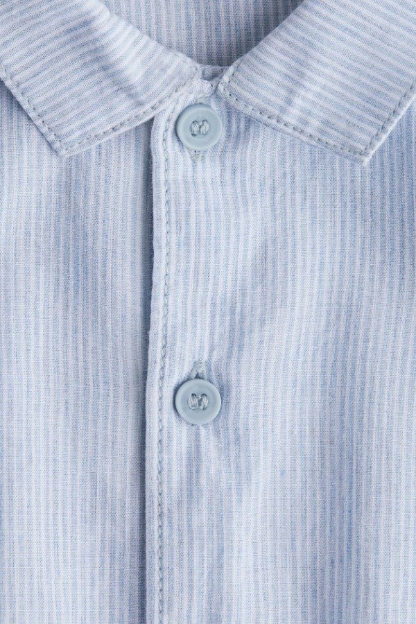 Camisa original H&M confeccionada en 100 % algodón, con un diseño clásico y fresco en tono celeste con finas rayas blancas.