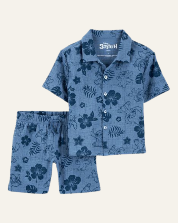 Tu pequeño se vestirá con estilo y frescura con este conjunto de 2 piezas Disney Lilo & Stitch de Carter’s. Incluye una camisa de manga corta con botones delanteros y un short con cintura elástica cubierta, confeccionados en suave gasa de algodón que aporta comodidad y transpirabilidad.