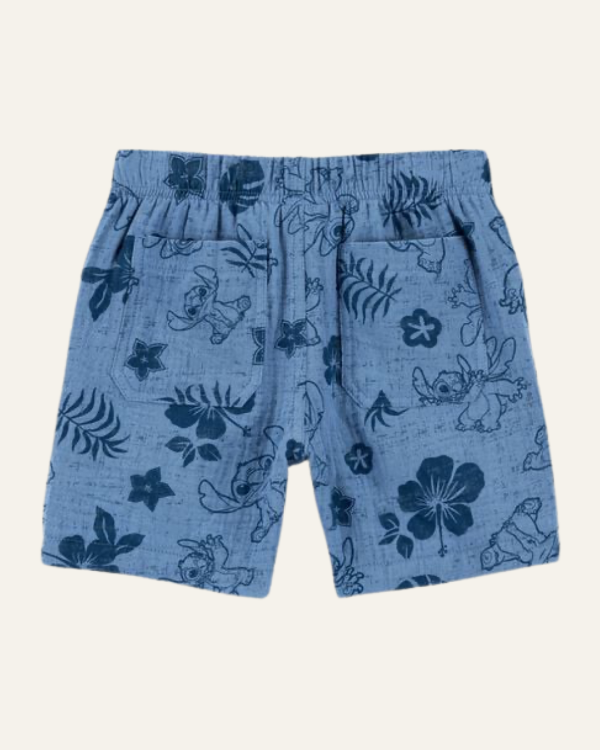 Con su diseño hawaiano en tonos azul marino y estampado de Stitch, es ideal para looks de verano, vacaciones, playa o salidas casuales.