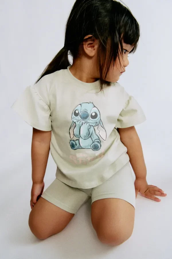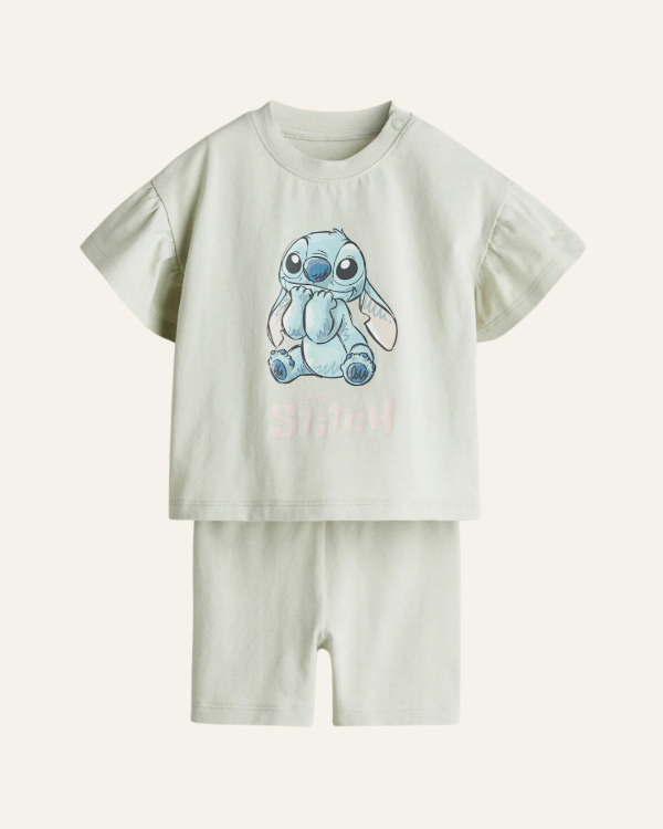 🔍 Palabras clave SEO: conjunto H&M Stitch, conjunto niña algodón, conjunto Disney H&M, ropa verano nena, conjunto manga volada bebé.