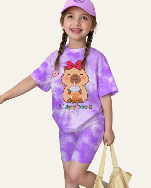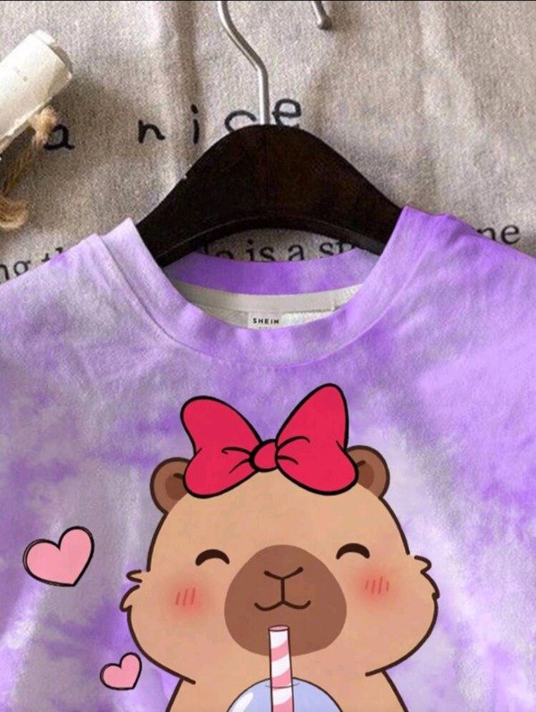 El set Shein original para niña incluye remera y short, con un diseño divertido y tierno inspirado en carpinchos (capybara). Ideal para uso diario o para regalar, combina comodidad con un estilo moderno y alegre.