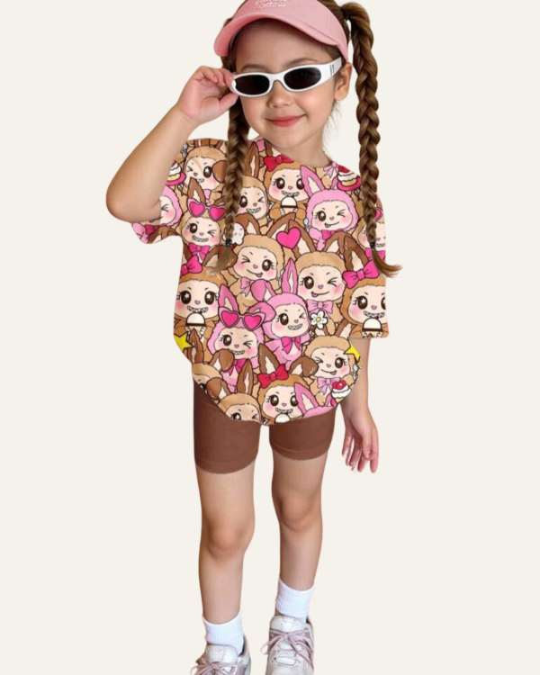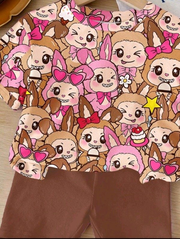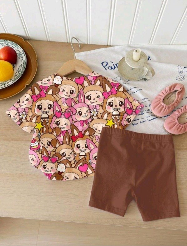 El set Shein original para niña incluye remera y short, con un diseño divertido y tierno inspirado en labubu. Ideal para uso diario o para regalar, combina comodidad con un estilo moderno y alegre.