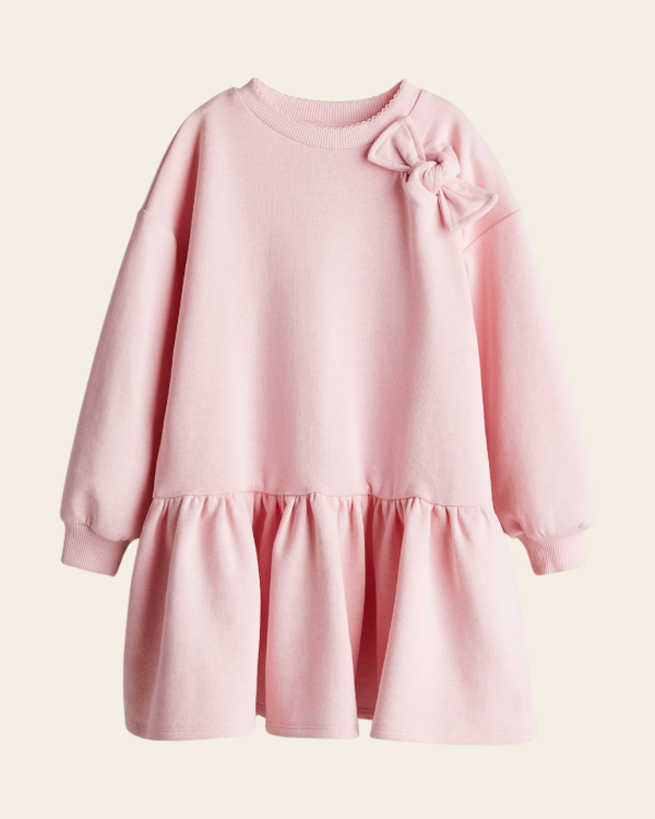 Vestido HYM estilo buzo liviano con un moño decorativo en el frente, ideal para looks cómodos y delicados.