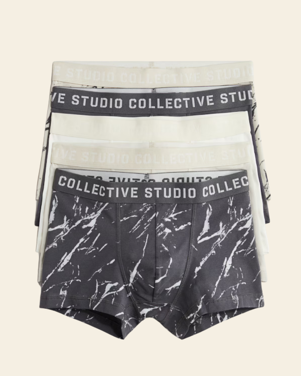 Pack de cinco bóxers H&M Studio Collective, confeccionados en jersey de algodón con cintura elástica personalizada y diseño moderno.