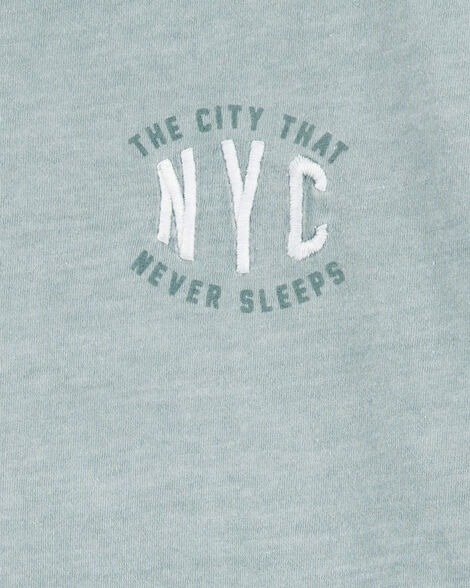 Remera con estilo urbano y moderno, confeccionada en algodón suave con efecto washed que le da un look gastado súper canchero. Lleva estampa grande NEW YORK CITY en el frente y detalle bordado NYC – The City That Never Sleeps en el pecho. Ideal para todos los días: cómoda, fresca y combina con todo.