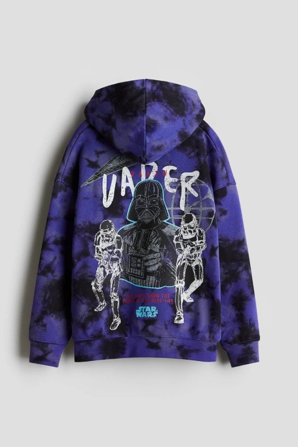 Diseño exclusivo tie dye en tonos violeta y negro, con estampado de Darth Vader y Stormtroopers en la espalda.