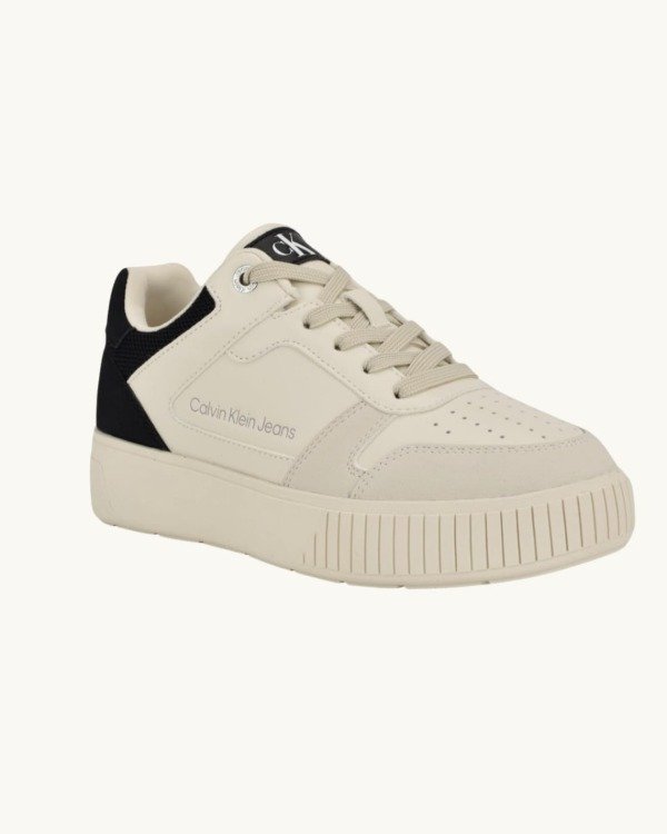 Elegancia y estilo en cada paso. Las zapatillas Calvin Klein Jeans modelo Ahliah combinan diseño urbano con un confort inigualable. Confeccionadas en material sintético de alta calidad, presentan un acabado en color ivory (blanco hueso) con detalles en negro, ideales para looks modernos y versátiles.