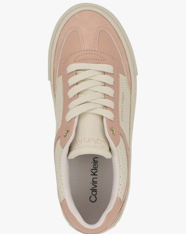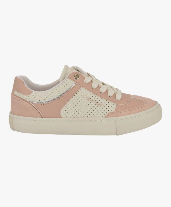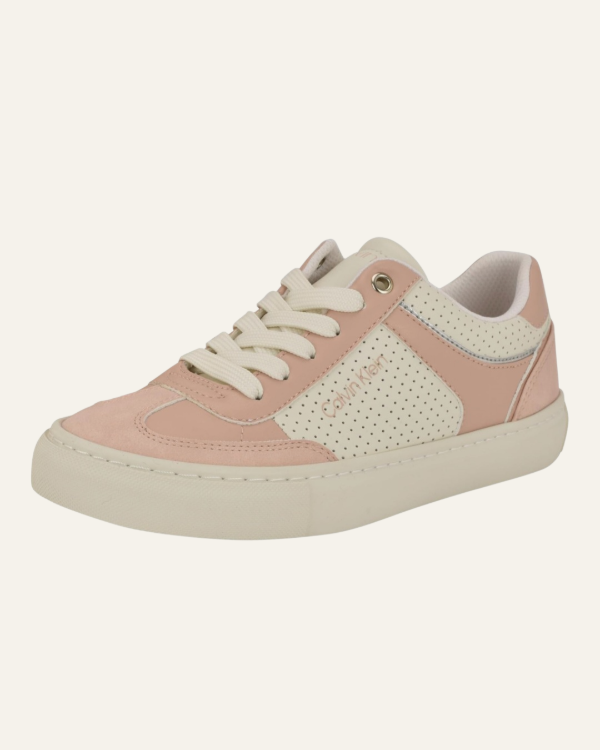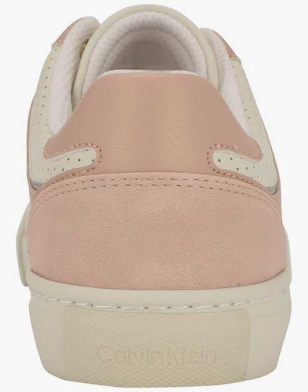 Estas zapatillas Calvin Klein combinan estilo urbano con el toque elegante característico de la marca. Confeccionadas en cuero sintético de alta calidad, presentan una parte superior en tonos rosa y blanco, detalles perforados y el logo Calvin Klein grabado al costado.